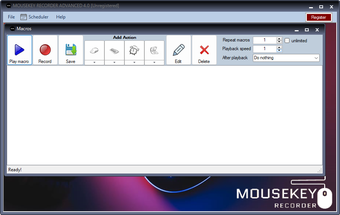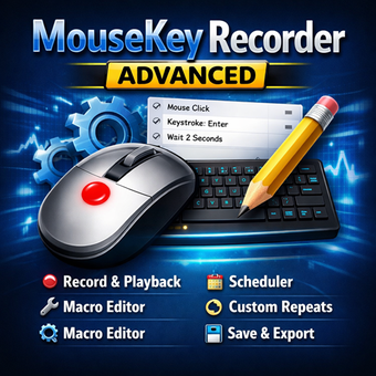 MouseKey Recorder Advanced is a powerful and user-friendly macro automation software that allows you to record mouse movements, clicks, and keyboard actions in real time and play them back automatically to automate repetitive tasks on your computer.